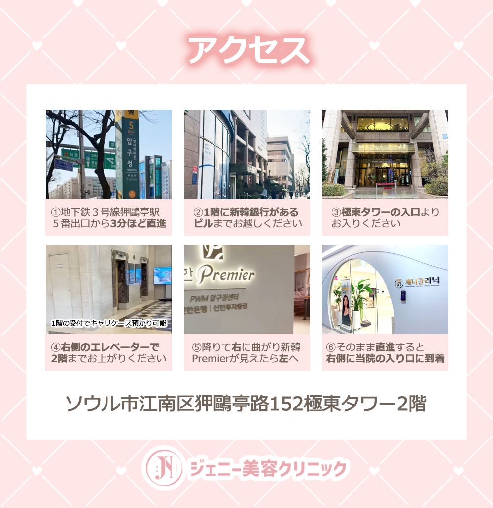 🚇 地下鉄3号線 狎鴎亭(アックジョン)駅 5番出口より徒歩約3分