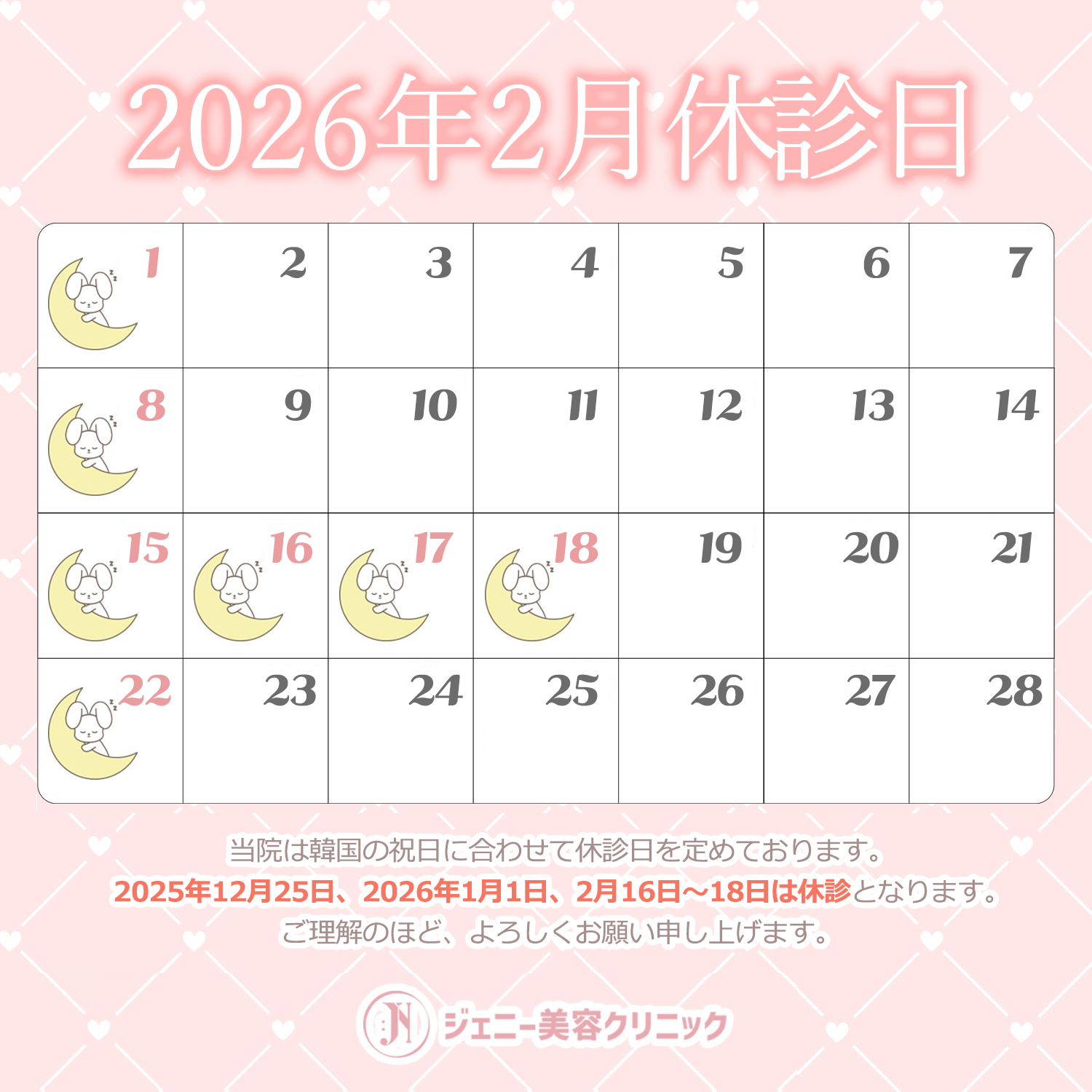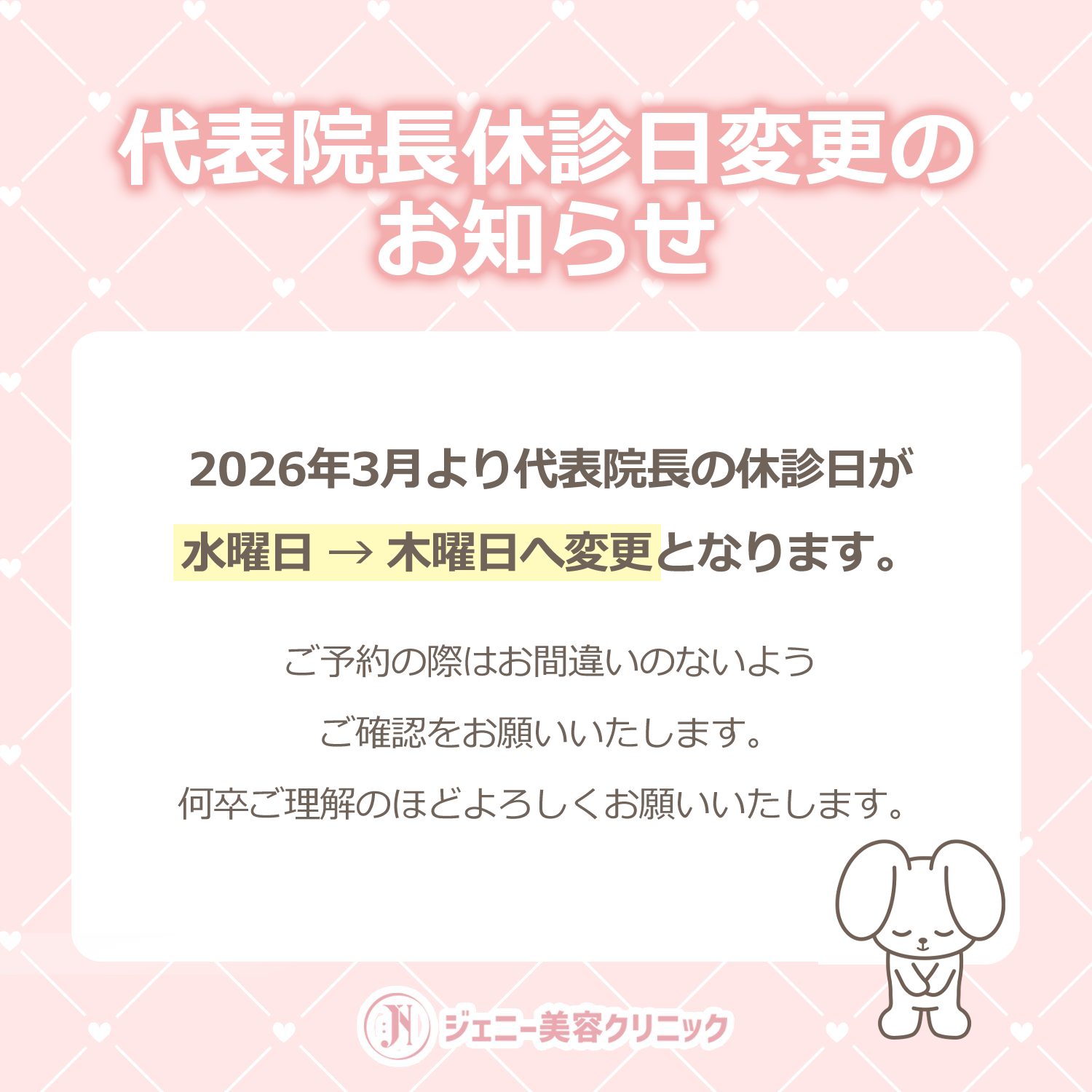 今後ともジェニー美容クリニックをよろしくお願いいたします🐰💗