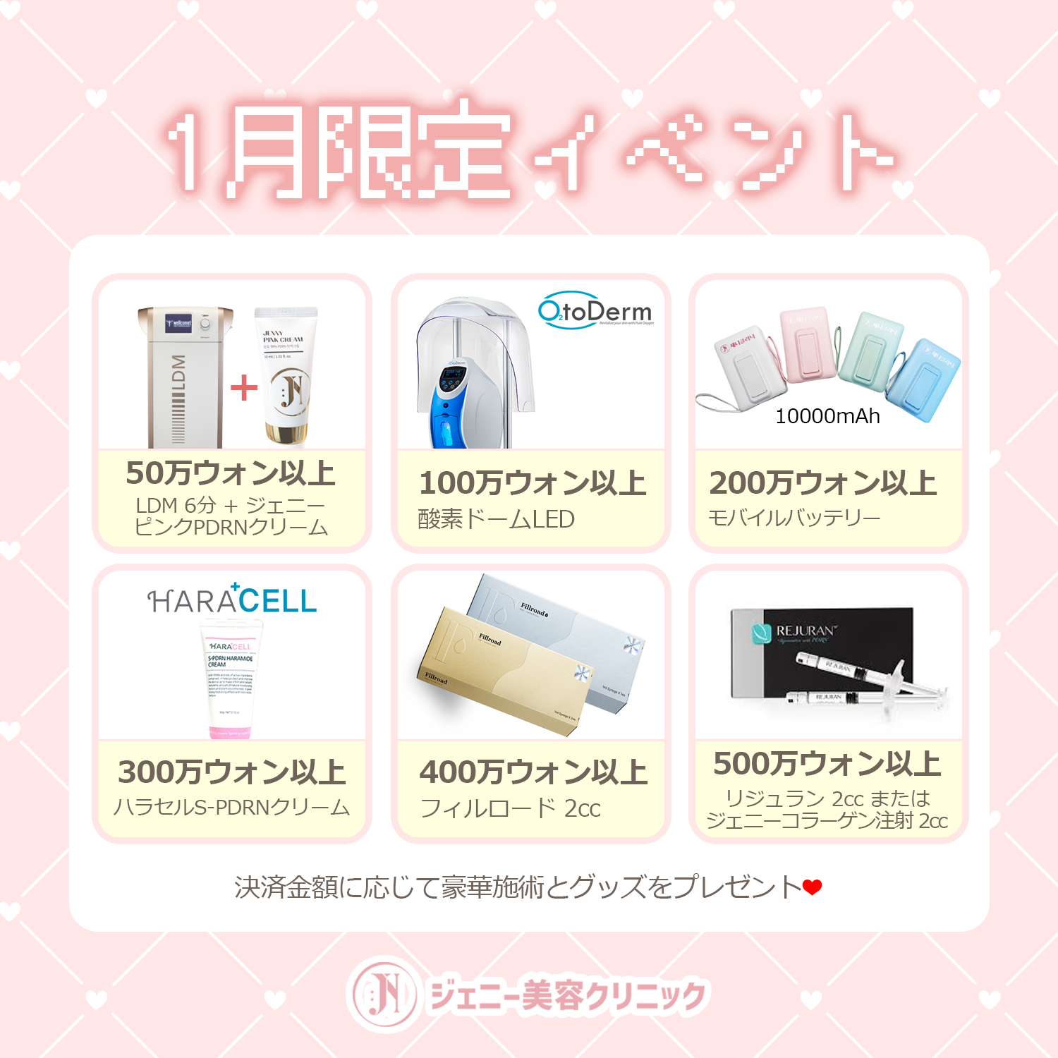 ☃️500万ウォン以上:リジュラン 2cc または ジェニーコラーゲン注射 2ccをプレゼント✨